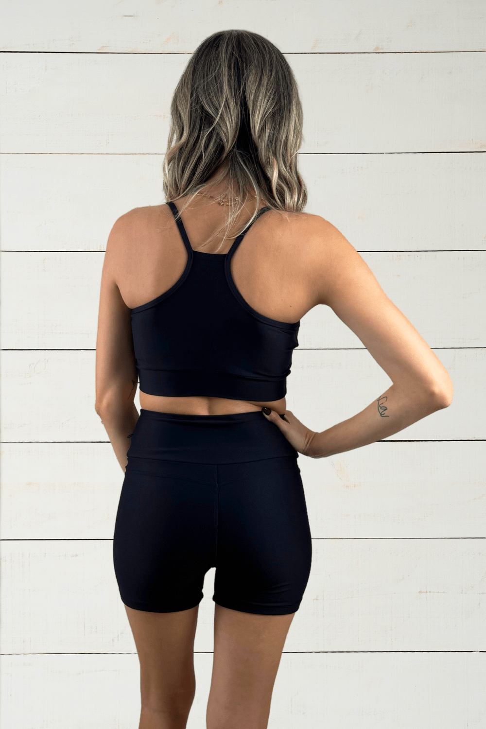 Uma básica necessária! Bermuda Catarina, modelagem média, cós alto e detalhe de costas com recorte empina bumbum. Em preto, é uma peça que alia conforto e estilo na hora do seu treino.