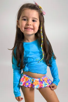 Blusa infantil de manga longa, em modelo raglan. Pode conter estampa com a logo IBSPORT em prata na frente. Na cor azul celeste, essa peça conta com proteção UV, perfeita para proteger os pequenos enquanto se divertem na praia/ piscina.