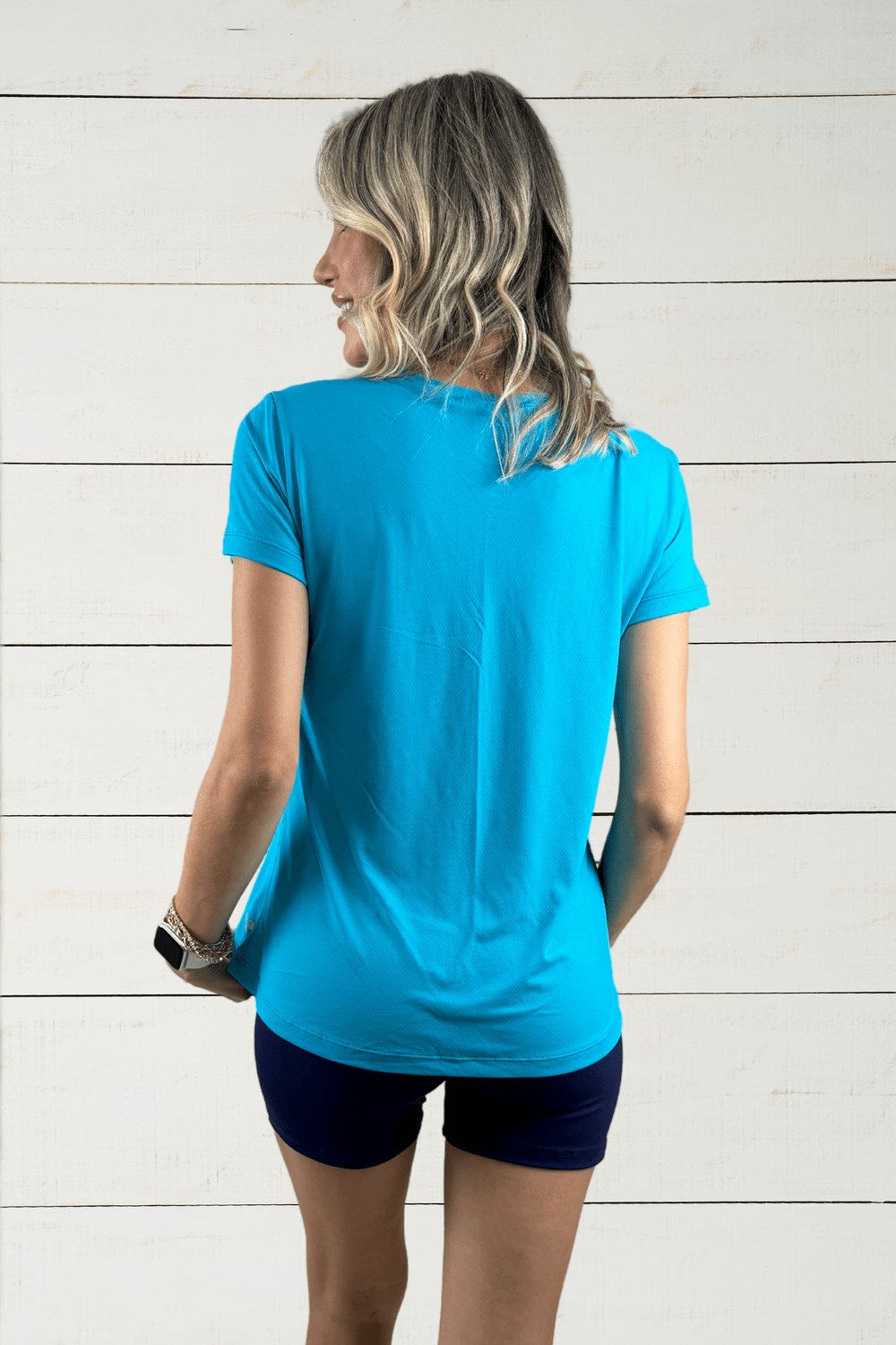 Em modelagem soltinha, levemente alongada nas costas, mangas curtas e decote redondo, a Blusa Olívia oferece liberdade de movimento e um ajuste confortável. Detalhe do logo na frente, em prata. Possui proteção UV, garantindo cuidado extra durante a prática de esportes ao ar livre. Feita com material leve e respirável, a Blusa Olívia é perfeita para todas as estações, proporcionando conforto excepcional em qualquer atividade física. Seja para corrida, yoga ou um simples passeio, esta blusa é a escolha ideal para quem valoriza o estilo e o bem-estar. Azul Turquesa.