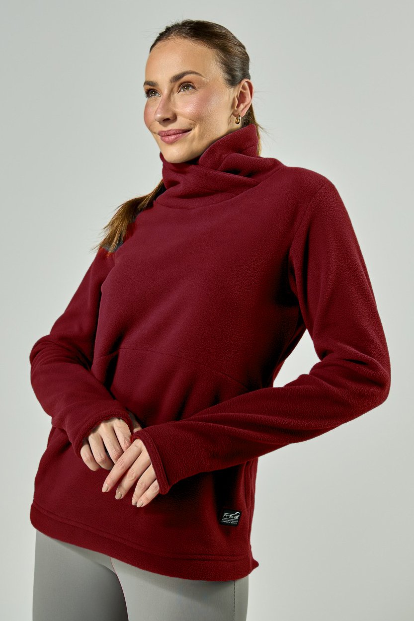 Frio, aqui não! O blusão praxis, além de versátil, conta com detalhes que o fazem ainda mais quentinho, ideal para os dias bem frios: uma estilosa gola alta, tecido super macio e aconchegante e mangas com abertura estilo luva. Conta com bolsos frontais e modelagem levemente alongada nas costas. Cor bordô.
