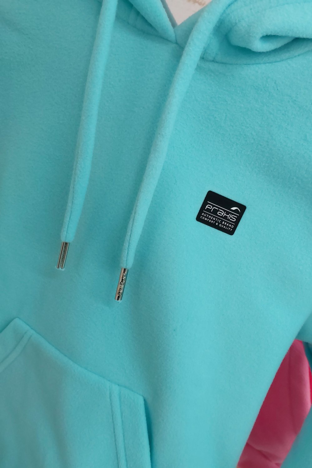 O aconchego e estilo para os pequenos nos dias mis frios! Blusão estilo canguru, com bolsos na frente e capuz. Em tecido soft, super macio, peluciado e quentinho e na cor verde água.