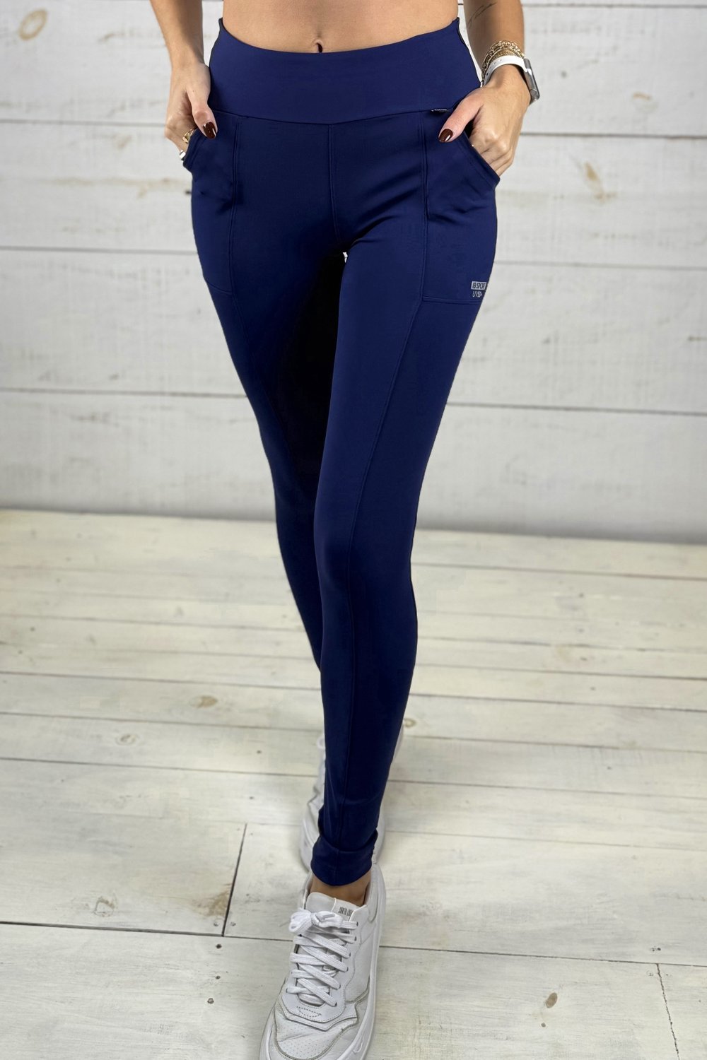 Ela definitivamente não é apenas uma legging. A calça Cecília possui bolsos funcionais, cós alto e recortes que proporcionam o efeito de bumbum empinado. Com acabamento em trama e logo IB SPORT em prata na frente. Uma peça moderna e confortável, podendo ser usada tanto na prática de esportes, como no dia a dia. Azul Marinho.