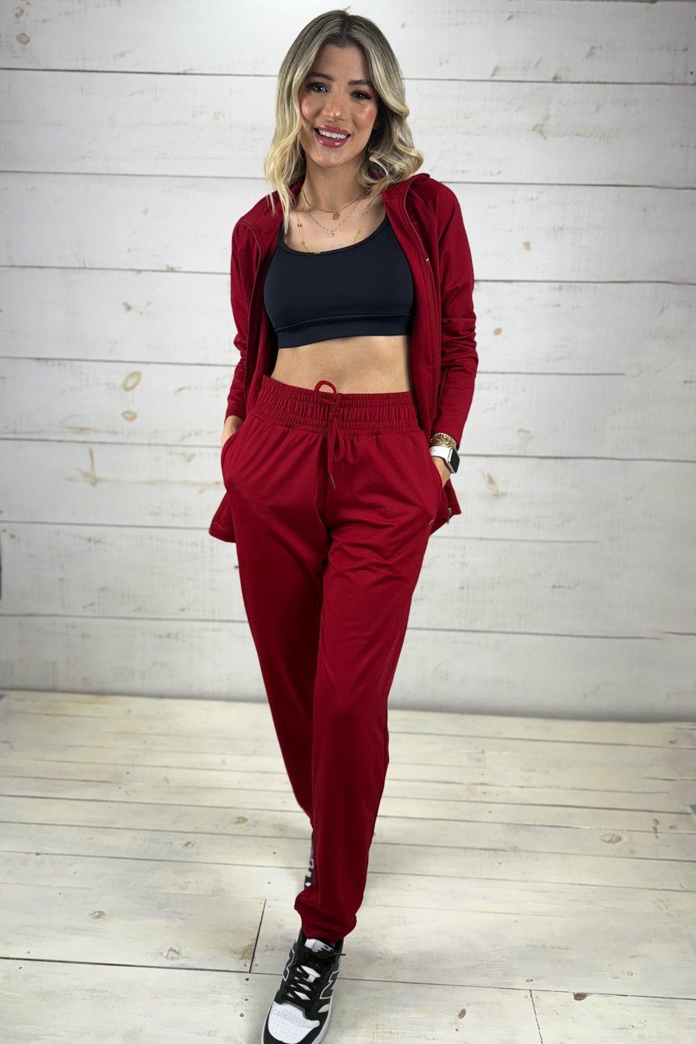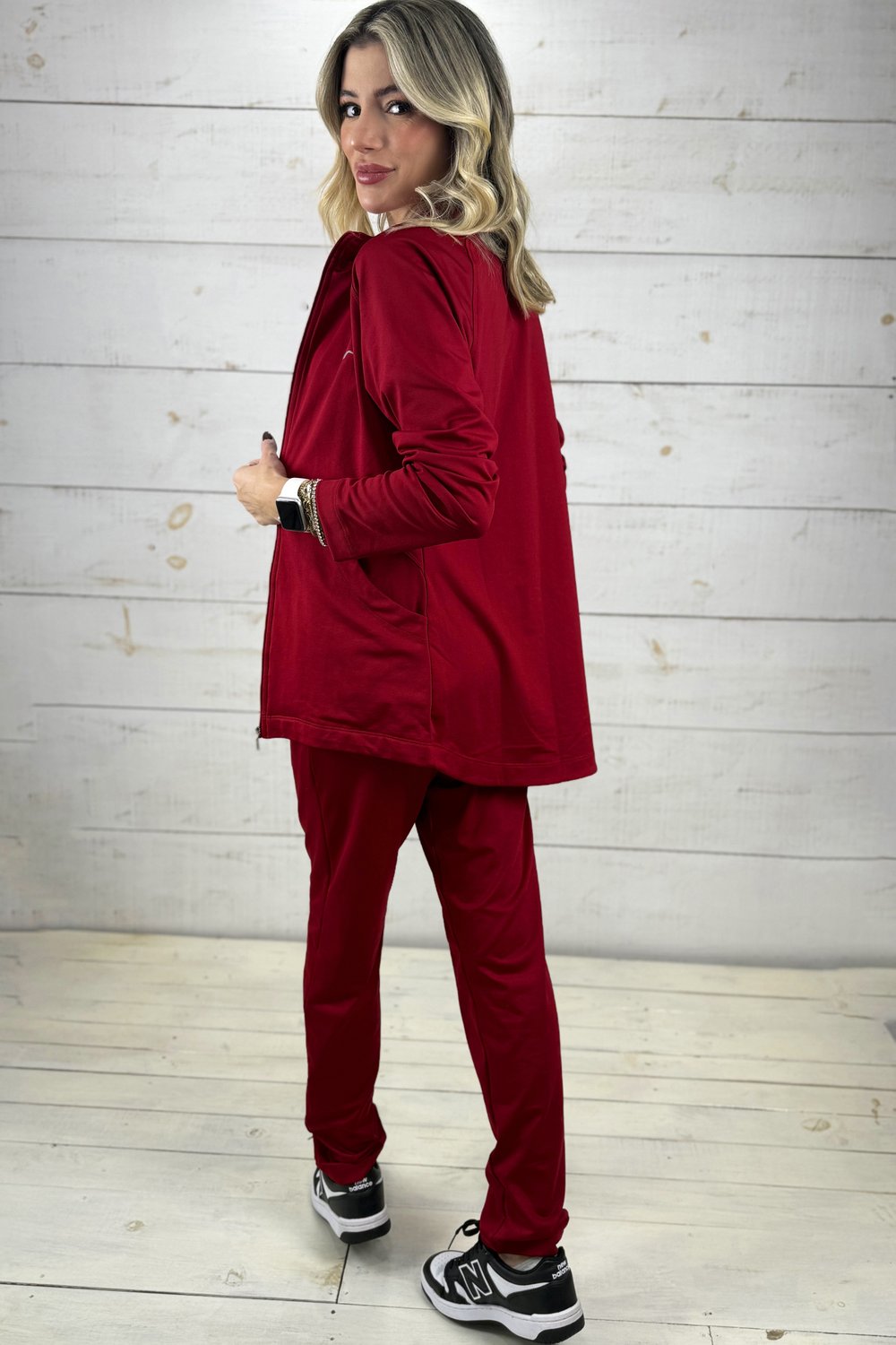 Os dias mais frios pedem uma calça quentinha e confortável! Com tecido tecnológico, ela proporciona conforto térmico e toque macio. Cós ajustável com elástico. Em modelagem skinny, conta com bolsos laterais funcionais. Cor bordô.