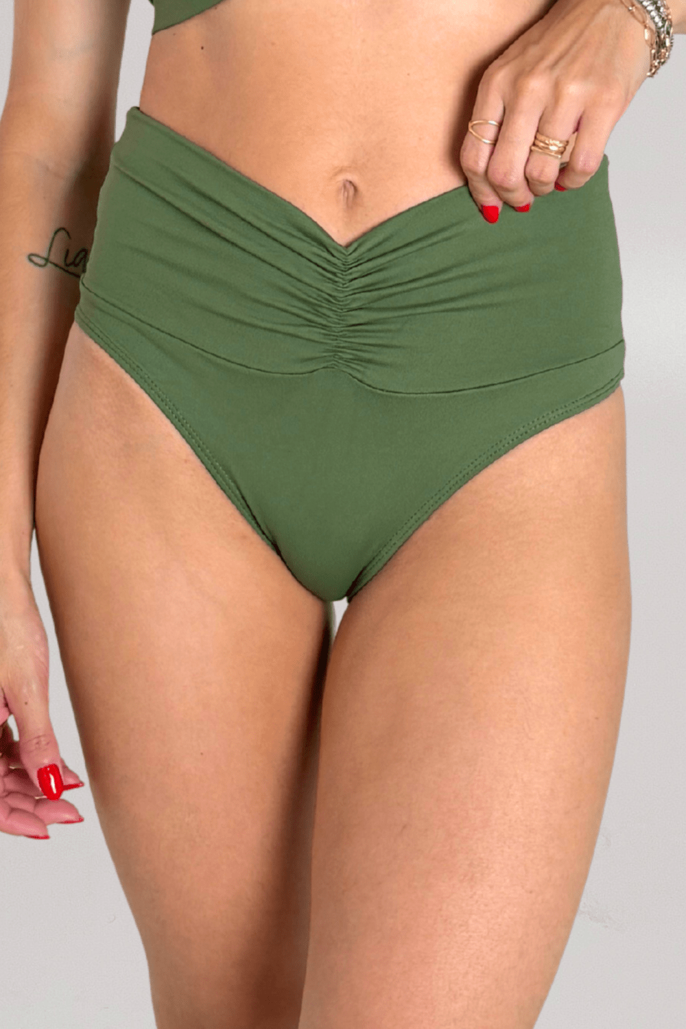 Uma calcinha que vai modelar e valorizar seu corpo! A calcinha Cancún é mais uma novidade da Ilha que veio com o propósito de deixar você mais linda e confiante. O cós é largo, porém conta com elástico tanto na frente como na parte de trás, deixando a peça com um detalhe diferenciado, mas que também ajuda a disfarçar possíveis gordurinhas. Cor verde musgo.