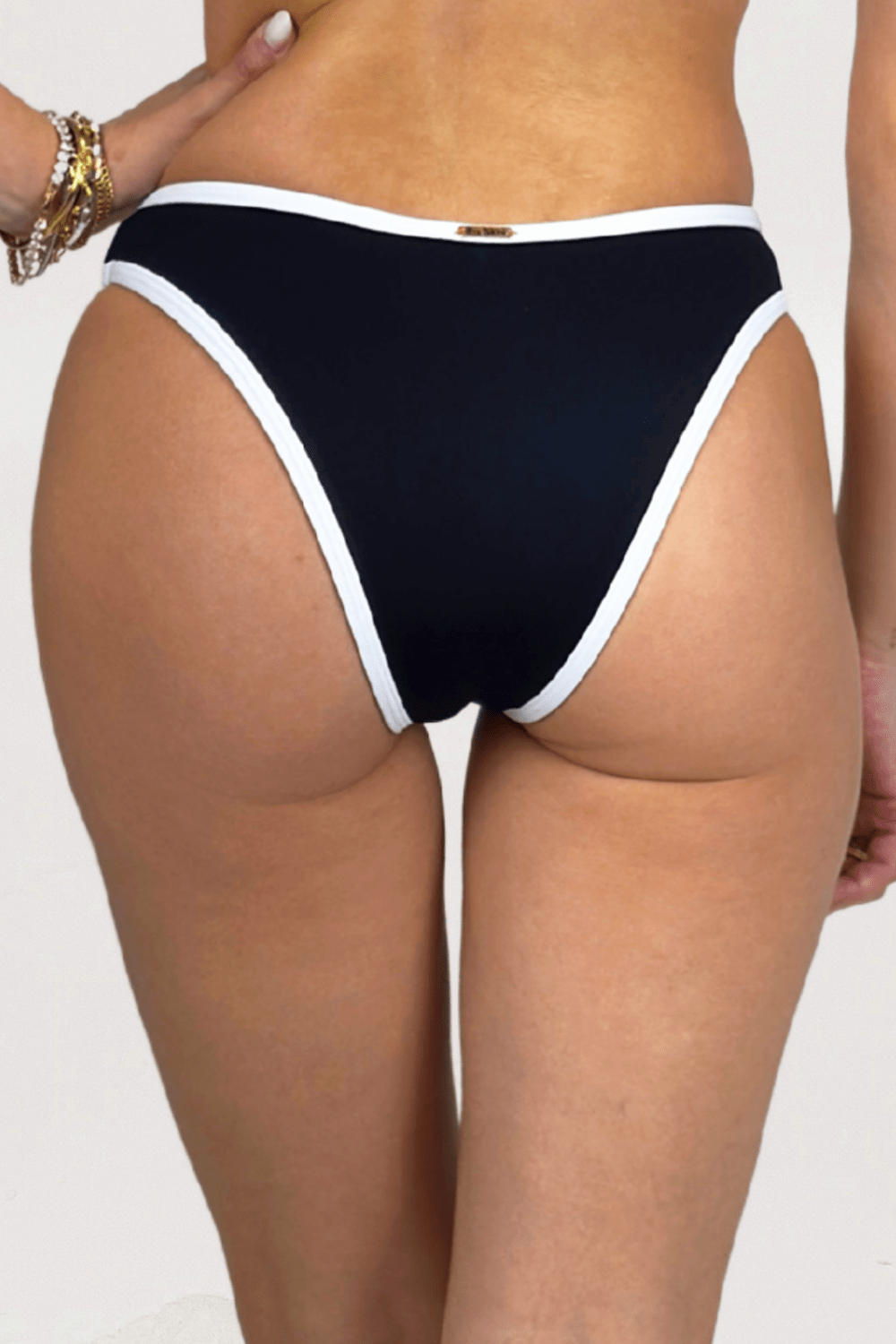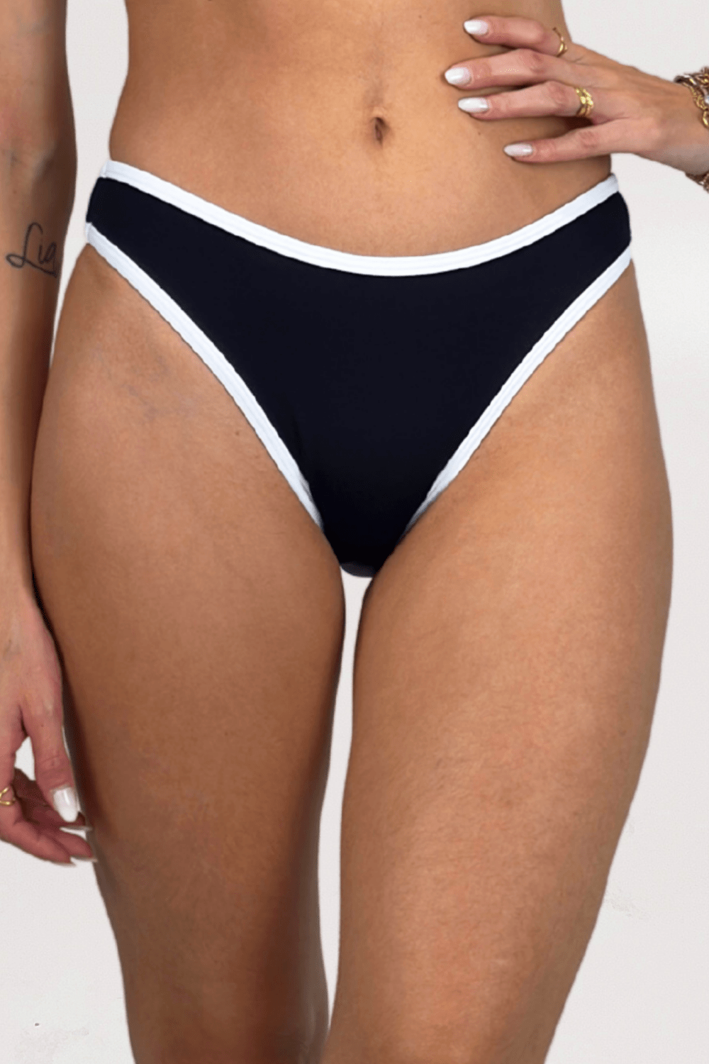 Maricá é uma calcinha de modelagem clássica, sem recortes, que valoriza todos os corpos. Na combinação P&B que é puro charme: corpo preto com bordas brancas. Confortável, elegante e fácil de combinar. Forro preto para mais segurança no uso.