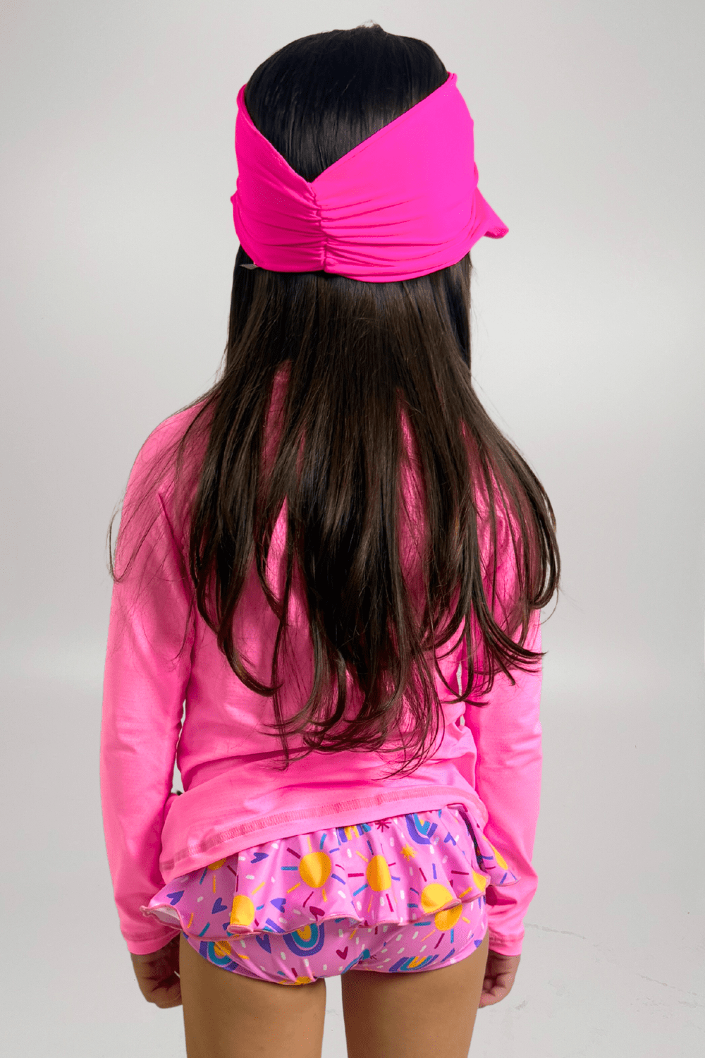 Calcinha de bebê com modelagem mais ampla, garantindo conforto e liberdade para os pequenos se movimentarem à vontade. Tanto cós como cavas contam com uma pequena barra para maior conforto. O charme fica por conta do babado que contorna toda a cintura, trazendo um toque fofo e divertido ao visual. Confeccionada em tecido macio e de secagem rápida, é perfeita para acompanhar os dias de sol com estilo e praticidade. Em colorida estampa de arco íris sobre um fundo rosa, o forro é nude.