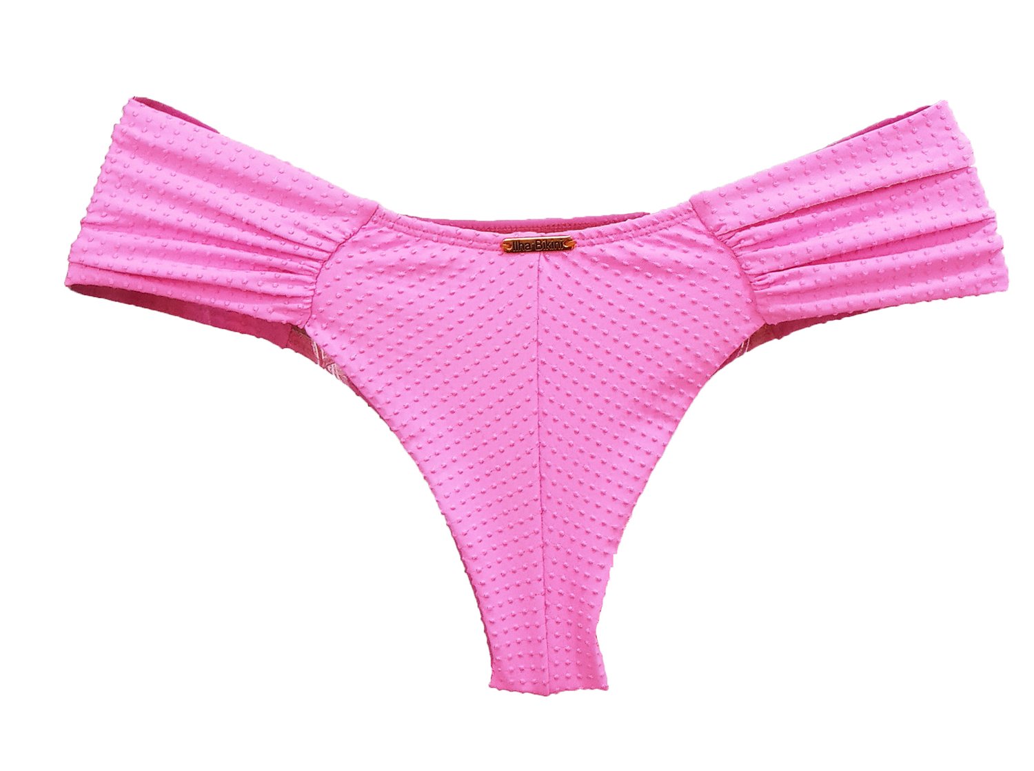 Nossa clássica Calcinha Confort, agora com as costas em modelo semi fio. As laterais são médias e franzidas. Na cor rosa neon, o diferencial fica por conta do tecido, com de pontinhos em alto relevo. Uma peça moderna e confortável que possui inúmeras possibilidades de combinações.