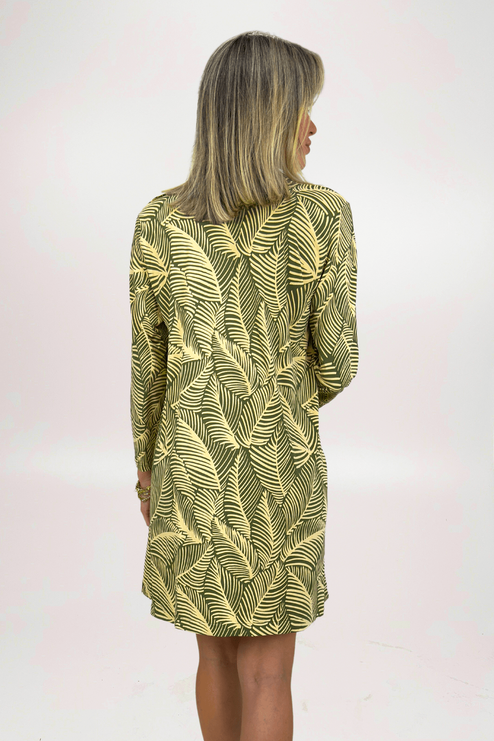 Com toque leve e modelagem elegante, a saída de praia Amores em estilo camisa é a escolha perfeita para transitar com charme da areia ao pós-praia. Confeccionada em tecido geladinho e fluido, proporciona frescor e conforto ao vestir. Possui mangas 7/8, recortes laterais que garantem leveza no caimento e botões dourados que adicionam um toque sofisticado ao visual. Em estampa com o mesmo padrão de um modelo de biquíni e maiô da coleção, é ideal para compor um look completo e harmonioso nos dias de sol. Versátil, também pode compor looks para o dia a dia. Estampa de folhas em tons de amarelo e verde musgo.