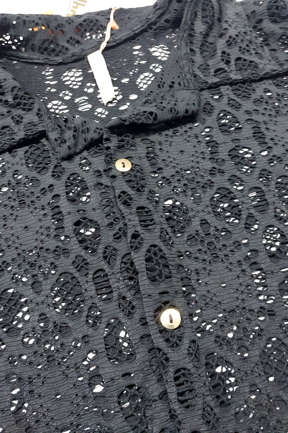 Leve elegância e charme para seus dias de sol com a saída de praia Jericoacoara, estilo camisa. Confeccionada em renda, ela garante um visual sofisticado e ao mesmo tempo leve e arejado. Com modelagem soltinha, mangas 7/8 e fechamento frontal com botões dourados, é a peça perfeita para compor looks estilosos à beira-mar ou à beira da piscina. Use sobre biquínis ou maiôs e transforme sua produção em um visual chic sem esforço. Preto.