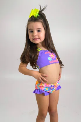 Deixe o verão ainda mais divertido com este conjunto infantil super colorido! Com estampa exclusiva de flores coloridas, ele traz toda a vibe tropical que as pequenas amam — perfeito para dias de praia, piscina e muita brincadeira. O top possui alças duplas cruzadas nas costas, garantindo mais conforto e firmeza durante os movimentos. Já a calcinha tem modelagem anatômica e acabamento com babadinhos amarelos, que dão um charme extra ao look.