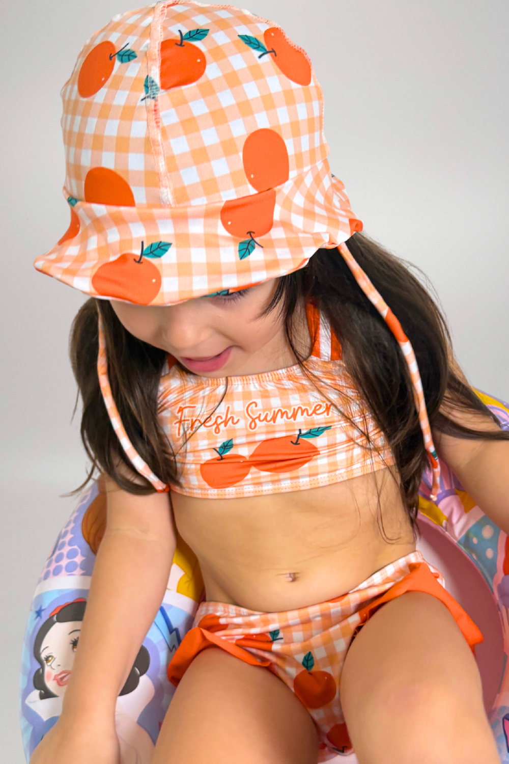 Conjunto De Biquíni Infantil Alças Cruzadas Xadrez Laranjas