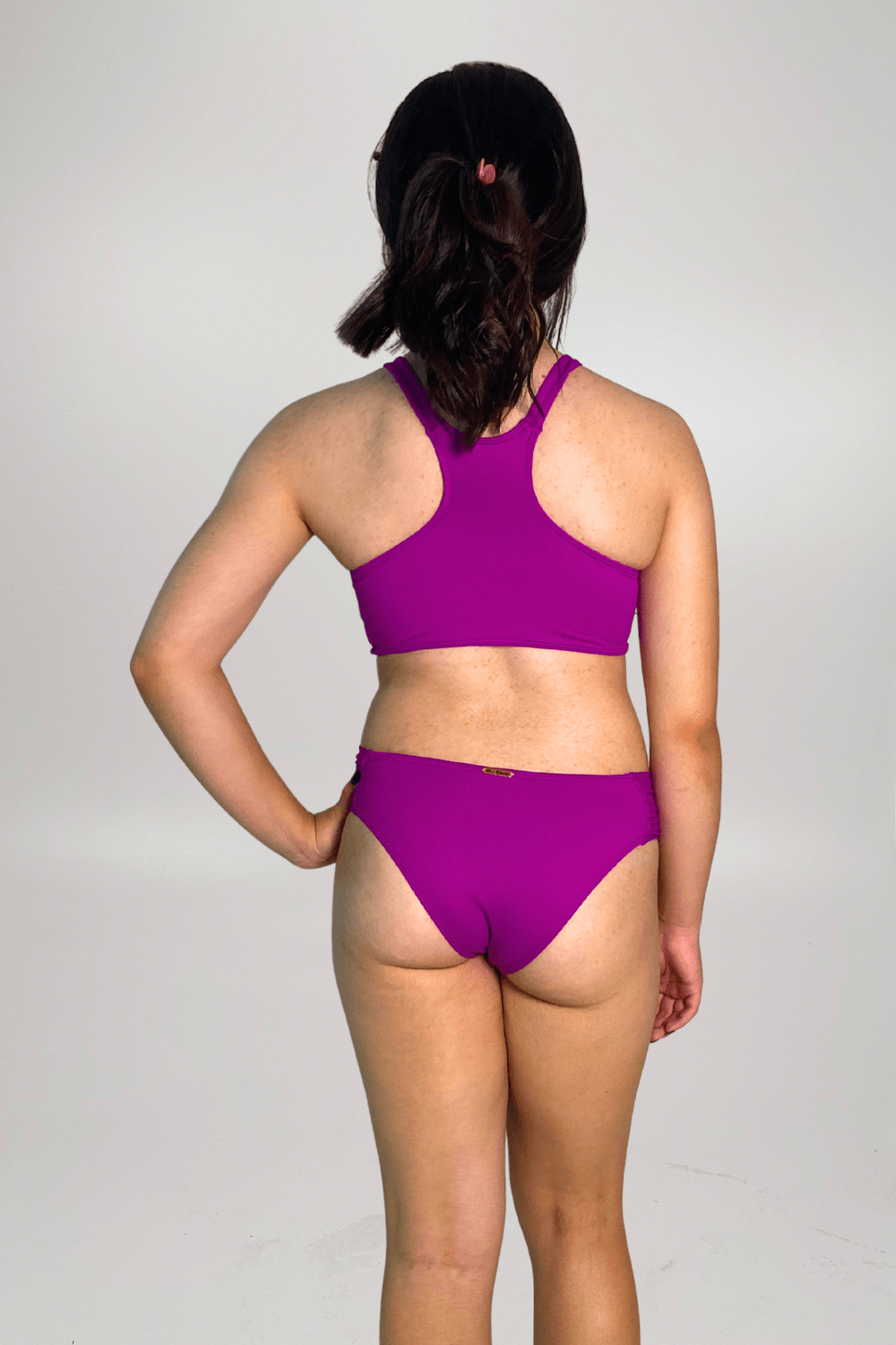 Um conjunto desenvolvido para acompanhar as meninas em dias de sol com muito conforto e liberdade. O top possui modelagem estilo nadador, oferecendo ótima sustentação e segurança para correr e aproveitar a praia ou a piscina sem preocupações. A calcinha tem laterais com leve drapeado, que garantem um caimento bonito e confortável no corpo, além de proporcionar maior mobilidade. O tecido é macio, resistente e de secagem rápida, perfeito para o dia a dia no verão. Cor magenta.