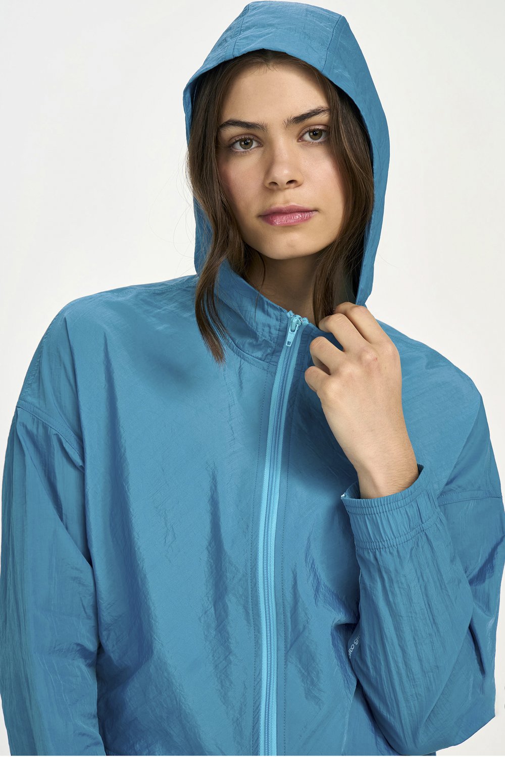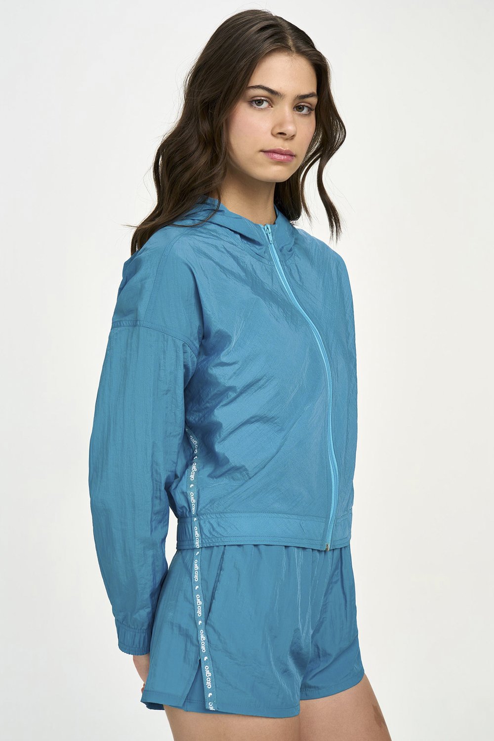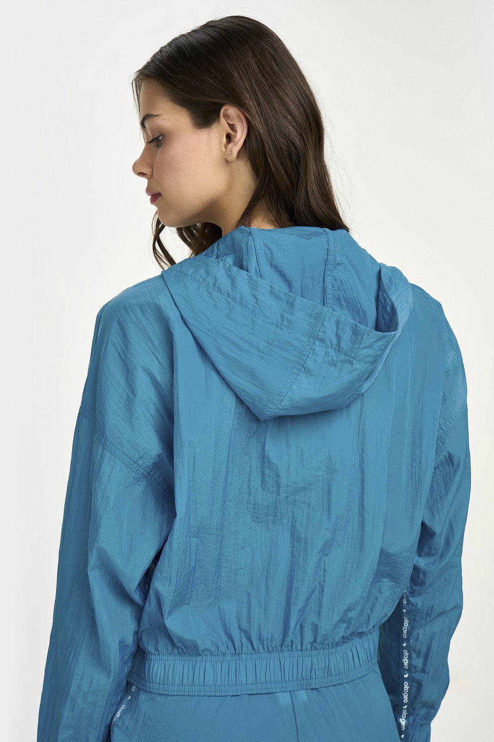 Estilosa e super atual, a Corta Vento Alto Giro em modelagem mais curtinha, ampla e com ombros deslocados, conta também com capuz, elásticos nos punhos e o detalhe exclusivo de fita com a logo AG nas mangas e laterais. Uma peça leve e confortável, ideal para os dias mais amenos. Cor azul petróleo.