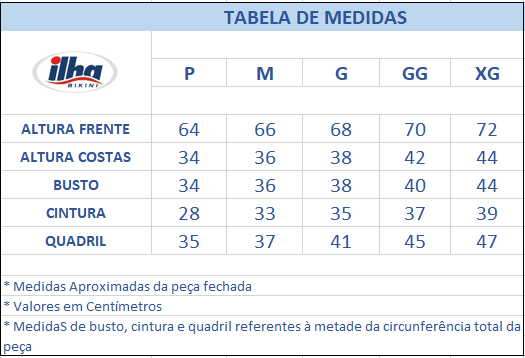 Fabricado em Lycra, um tecido mais encorpado, que deixa a peça mais firme, sem perder o conforto. Não tem necessidade de passar o ferro. Não possui proteção UV.