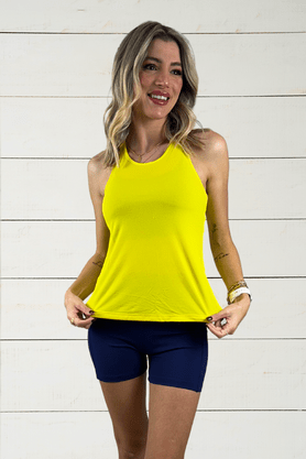 A leveza mais que necessária para o hora do treino! A Regata Carol, produzida em crepe super macio e leve, conta com costas em decote nadador. Cor amarelo.