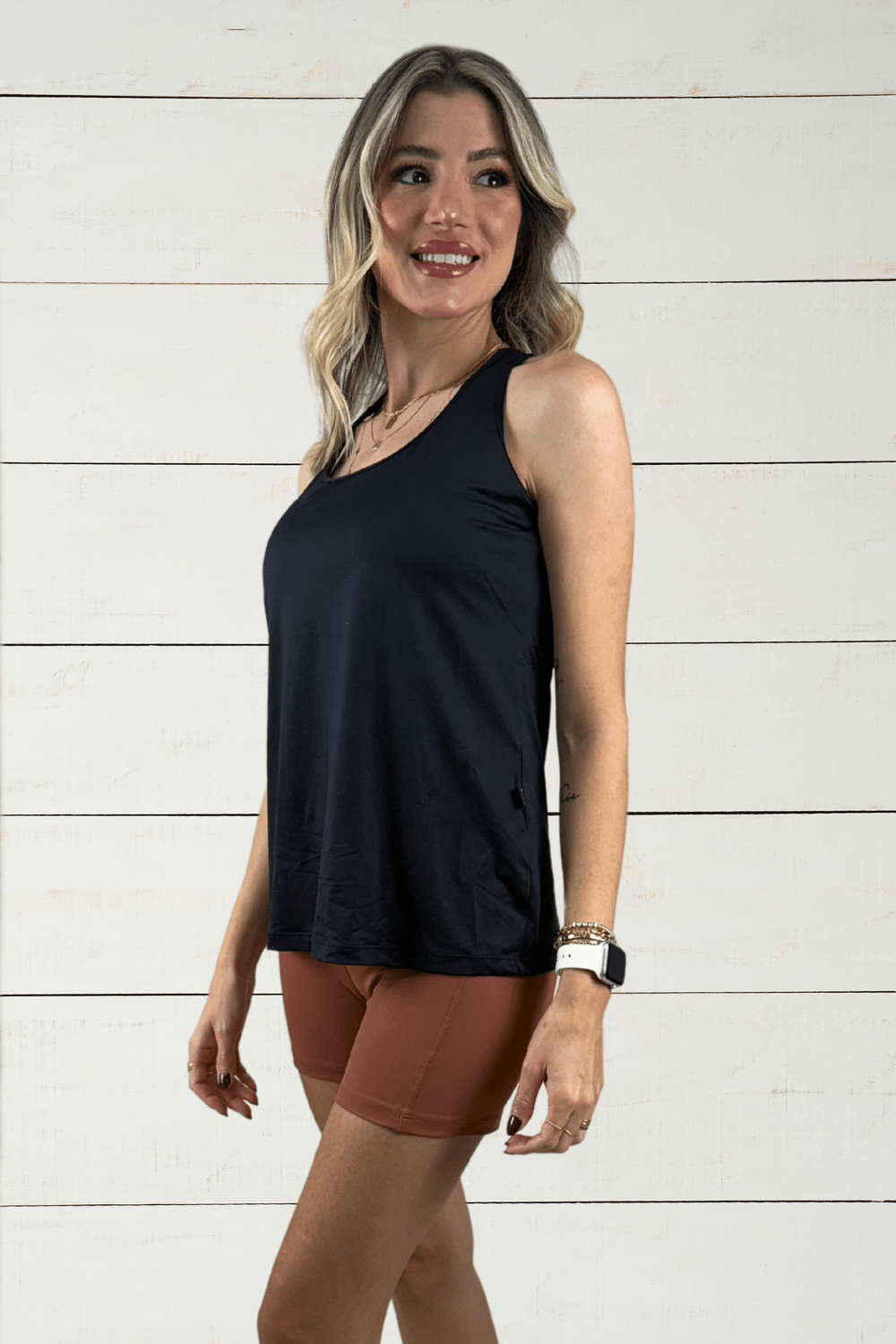 Leve, versátil, necessária! Regatas são sempre bem vindas nos dias mais quentes, quem não gosta de treinar apenas com top, e de preferência com um bom tecido, que respira, como é o caso da Regata Isabela. Na clássica modelagem regata, conta com detalhe nas costas, uma pequena abertura em formato de meia lua garantindo uma maior leveza à peça. Cor preta.