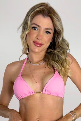 Sutiã Farol, o sempre amado Cortininha, na cor rosa candy. Alças com acabamento de ponteiras douradas e acessório na frente são o complemento perfeito para essa peça que nunca sai de moda. Possui bojo removível e forro nude.
