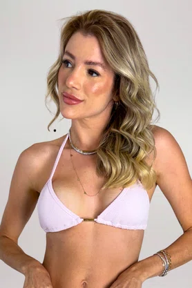 Sutiã Farol, o sempre amado Cortininha, com o diferencial do tecido, que conta com textura quadriculada. Alças com acabamento de ponteiras douradas e acessório na frente são o complemento perfeito para essa peça que nunca sai de moda. Em rosa claro, possui bojo e forro nude.