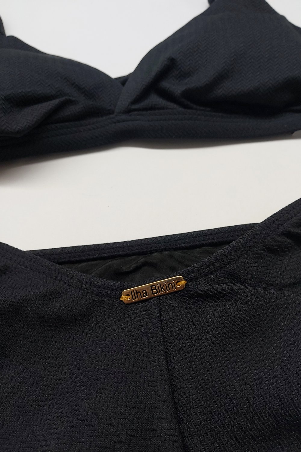 O glow up do nosso já conhecido sutiã fixo chegou: Laguna: as alças finas e delicadas contam com regulagem, oferecendo duas formas de uso: amarradas no pescoço ou como alças retas, no estilo sutiã – você escolhe o que te faz sentir mais confortável e estilosa! Com bojo removível, ele se adapta perfeitamente ao seu corpo e preferência, garantindo liberdade na hora de curtir o sol. Um modelo essencial, moderno e versátil para te acompanhar dentro e fora da praia. Cor preta, o tecido é com textura.