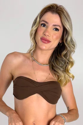 Elegante e sempre em alta, nosso sutiã Zimbros, em modelo tomara que caia, conta com detalhe transpassado na frente, laterais largas e amarração nas costas. Acompanha alças removíveis. Com bojo embutido. Cor marrom.